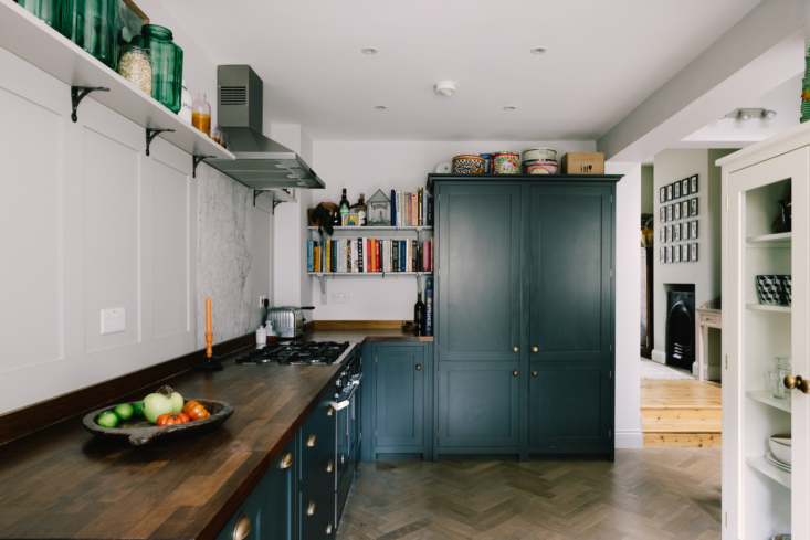 Above: The cabinets are by deVOL and painted Farrow & Ball’s Studio Green.