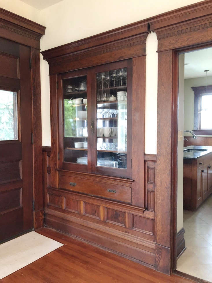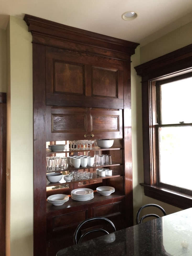 Above: A glass-fronted cabinet is conveniently accessible from both dining room and the kitchen. Photograph by Hillary Straatman.