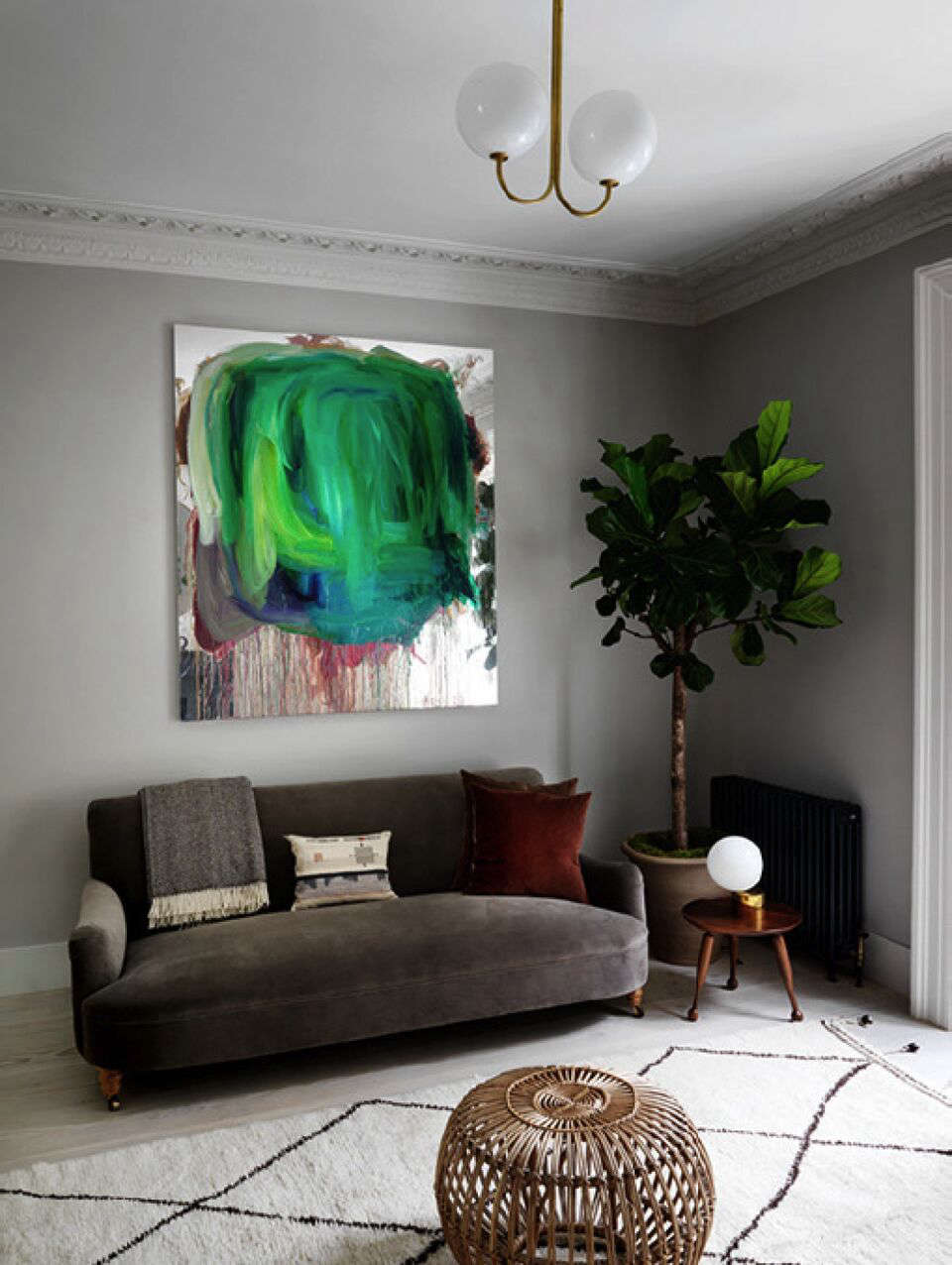 Above: The walls are painted Mid Lead Colour from Little Greene.