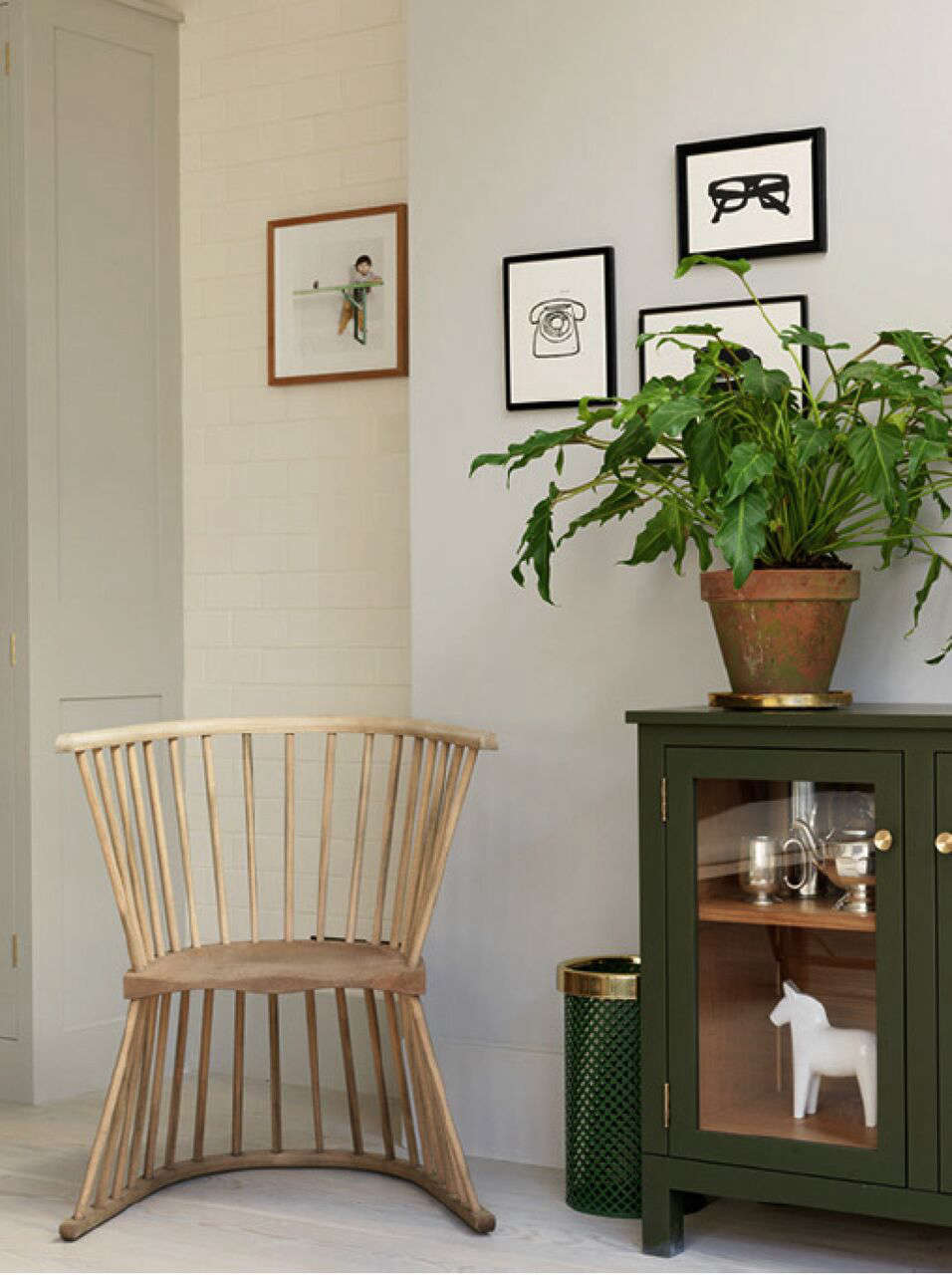 The brass-edged mirror is 1950s Italian and one of many pieces from The Apartment in Copenhagen. The Umbrella Stand is a Josef Frank classic from Stockholm’s Svenskt Tenn, Rao’s other favorite source introduced to her by Charles.