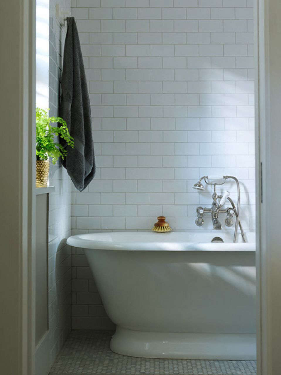 Above: The grand freestanding tub and wall-mounted taps are from Lefroy Brooks.