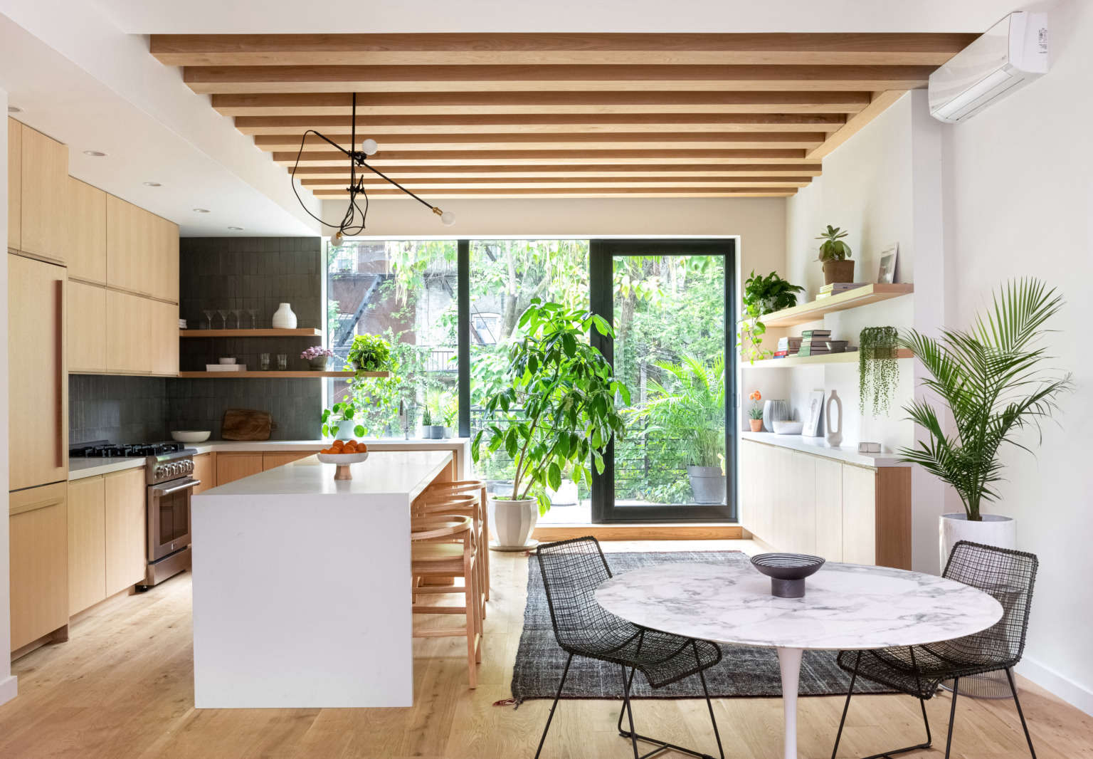 Having a backyard in Brooklyn is a rarity in the best of times. The young family of three who bought this 1899 townhouse in Bed-Stuy a year ago knew they wanted to link indoors to out—but they could never have anticipated how grateful they’d be feeling right now for access to their own patch of greenery.