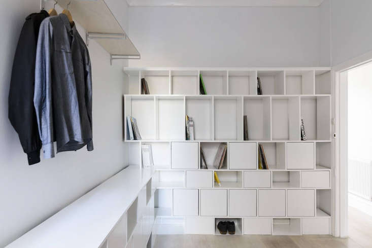 Above: Architect Otto Henkell kitted out the bedroom in a tiny cottage in Melbourne with plenty of storage, courtesy of white cubbies of various sizes and shapes. See Before/After: 11 Ideas to Steal from a Tiny Melbourne Worker’s Cottage for more.,