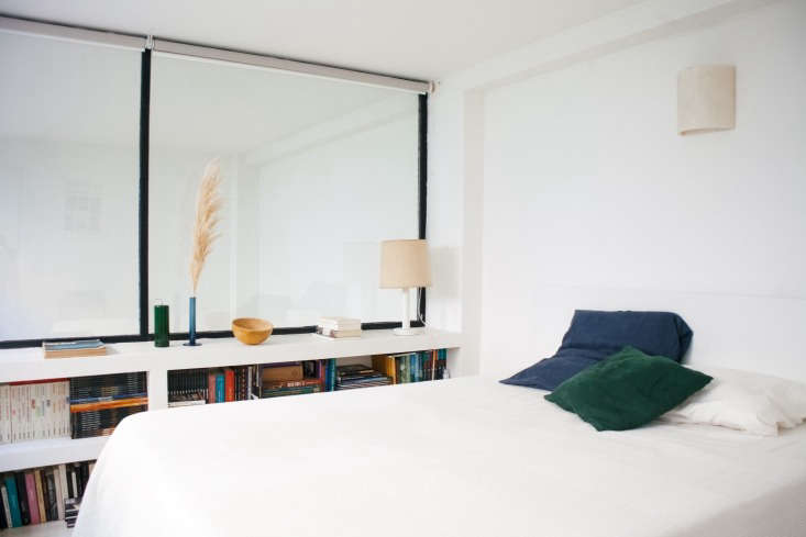 Above: Low, built-in shelves line the Paris bedroom of French style-maker Lucile Demory. Photograph by Claire Cottrell for Remodelista. See Modern Thrift: Lucile Demory’s Architect-Designed Rental in Paris for a look at the full apartment.