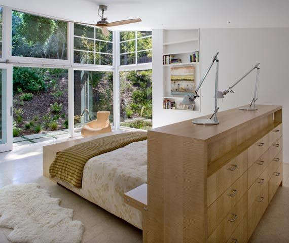 Above: San Francisco architects Turnbull Griffin Haesloop incorporate bedside tables and a dresser into the headboard of a bed, which also acts as a room partition. Photograph by David Wakely, courtesy of Turnbull Griffin Haesloop.