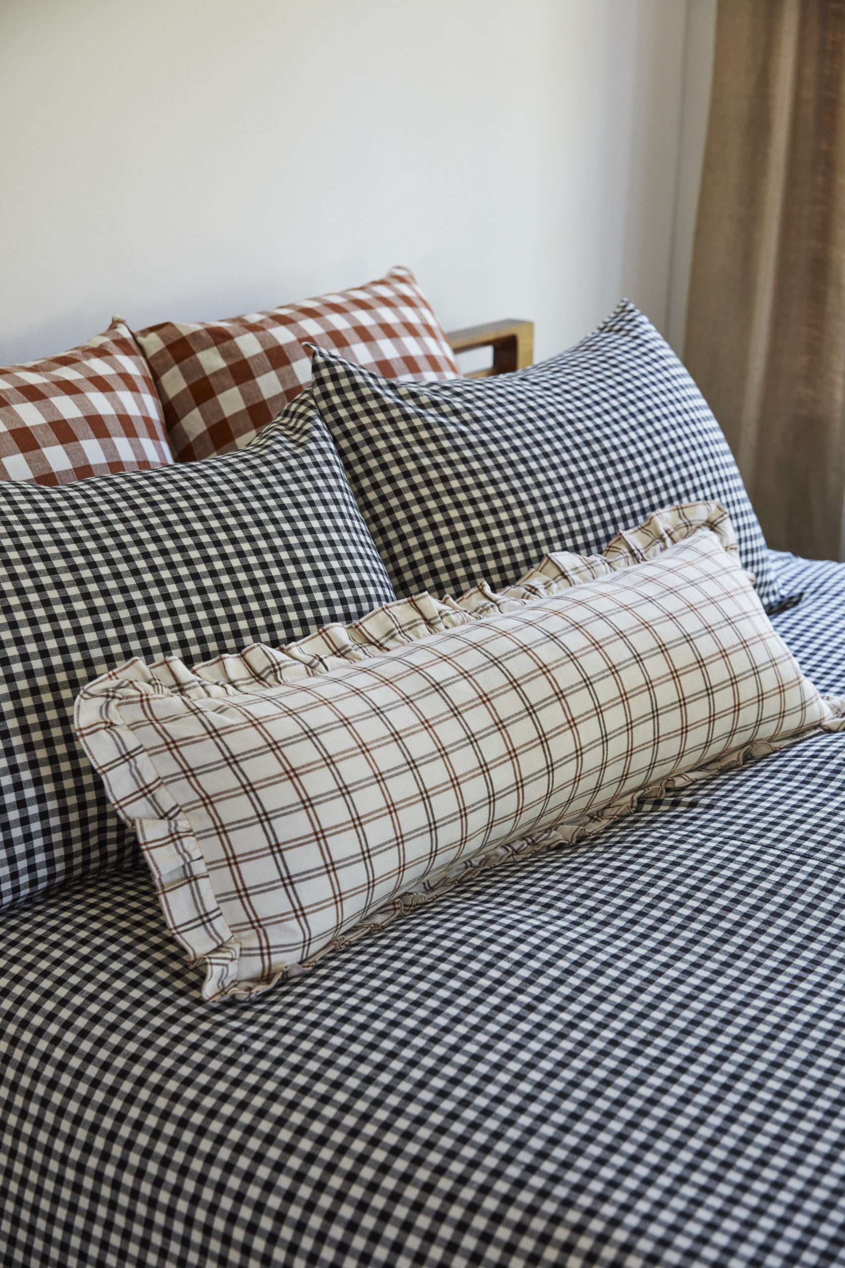 All of the beds in Goldilocks and The Three Bears were made with gingham linens—at least in the version I recall. Which makes sense: this classic check is reliably homey for adult and child-size setups. With caveats: so often gingham bedding is too cute. Or it’s too bold.