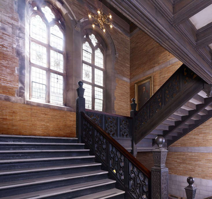 Above: In the back of the hotel, stairs lit by a wall of leaded glass lead to the refectory. For details and reservations, go to High Line Hotel. For more on Roman and Williams, see 7 Secrets from the Set Designers: A Q & A with Roman and Williams and Required Reading: Things We Made, by Roman and Williams.