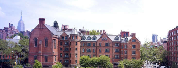 Above: The immense Gothic structure was built for the General Theological Seminary in 1895 (it was formerly an apple orchard on an estate that belonged to Clement Clarke Moore, who wrote ‘Twas the Night Before Christmas–and willed tracts of his property to the Episcopal Church.) This photo was taken from the High Line, the elevated rail bed turned urban park, across the street from the hotel. Twenty-two of the 60 guest rooms have views of the High Line.
