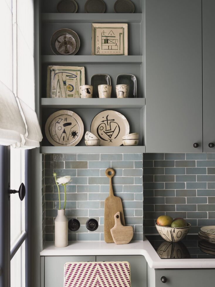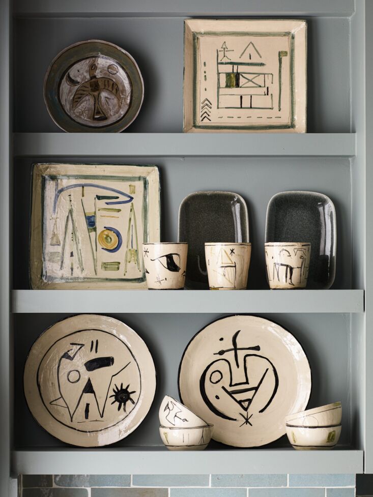 Above: The ceramics are by Parisian artist Catherine Magdelaine. “I like to have art in all the rooms, especially the kitchen,” says Evennou,