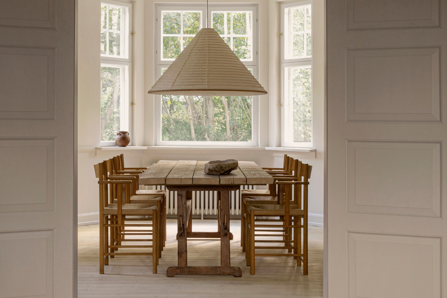 Above: The Norm Architects N-PL01 Pendant Lamp hangs above the dining room table.