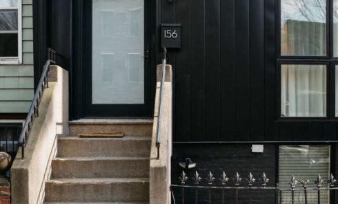 Above: A pair of vintage 1980s Pierre Chapo stools at the entryway.