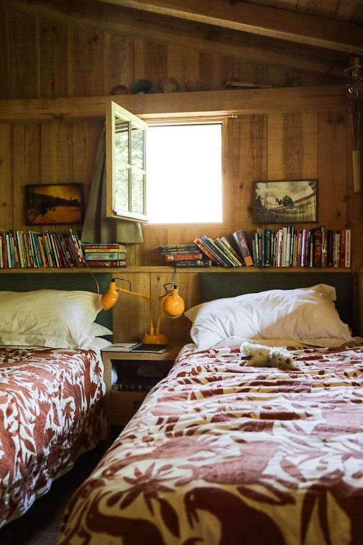 Above: The twins’ beds have Mexican embroidered bedspreads. L’Aviva Home offers similar Mexican Otomi Coverlets and Duvets starting at $615.