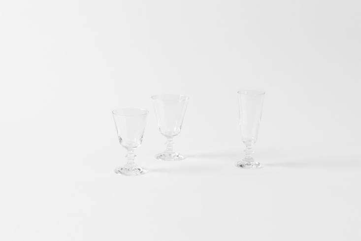 Above: For similar glassware to Yasuyo’s collection, Parigi Stemware from Italy comes as a wine, water, and champagne glass; $15 each at March.