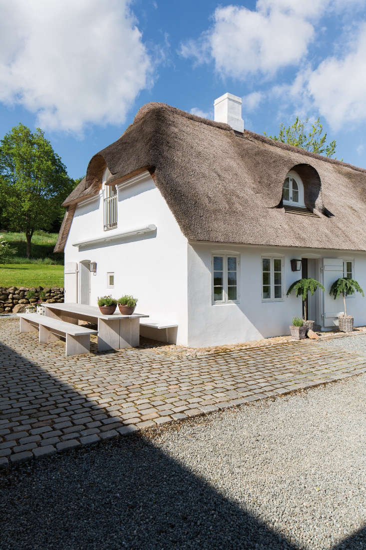 Above: The 240-square-meter (about 2,600-square-foot) house is a traditional southern Jutland longhouse (Sønderjysk gård), a type of 18th- and 19th-century farmhouse characterized by a thatched roof with the longest side aligned to the street. It was constructed in 1880, just 18 years before Dinesen was founded.