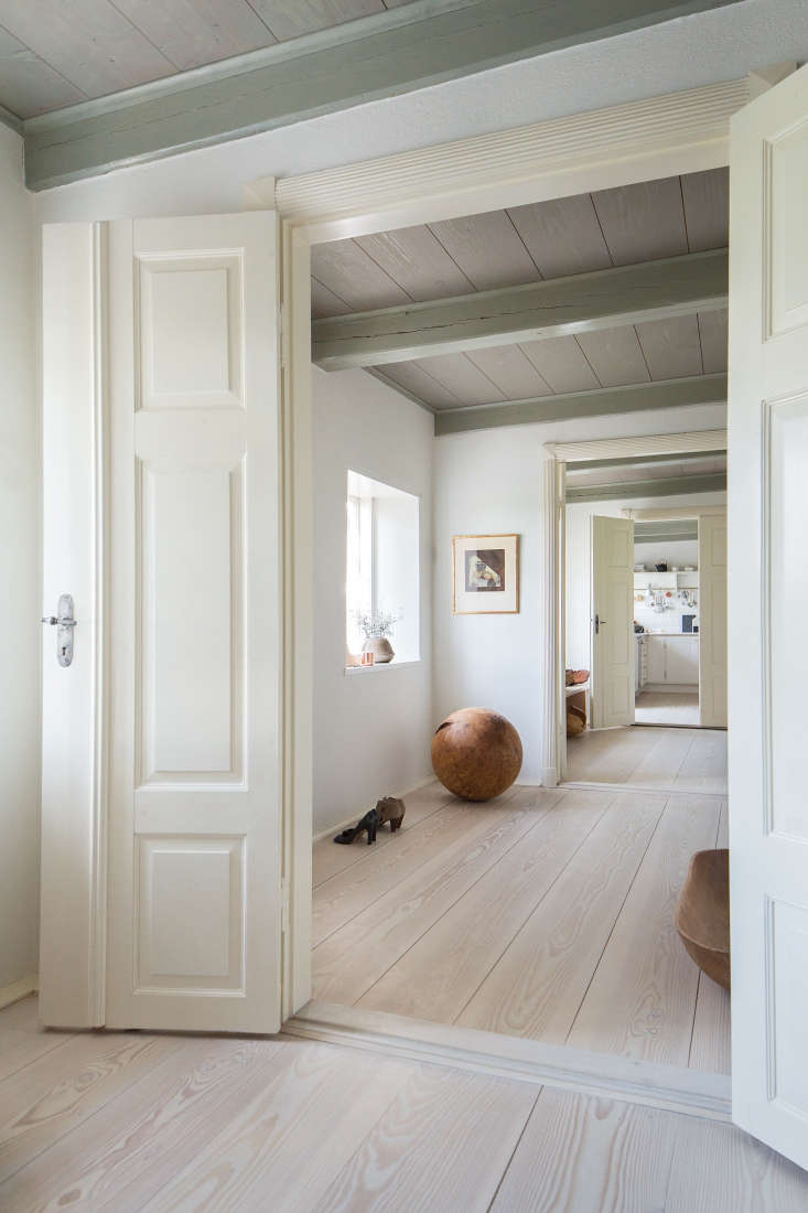 Thomas Dinesen doesn’t shy from tradition. He’s the fourth-generation owner of Dinesen, a Danish company that has been specializing in custom wood floors since 1898. In 2004, Thomas and his wife, Heidi, bought a historic Danish longhouse in southern Jutland with the intention of returning it to its former glory. They called on architect Jørgen Overby, a seasoned restorer, to help them reclaim the home’s original character, which, as the architect explains, had been lost over time due to unfortunate interventions. The interior was updated for a “historic minimalism” look, as the owners say. Here’s a look.