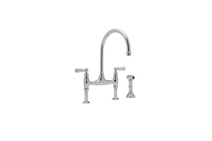 Above: The Perrin & Rowe Bridge Kitchen Faucet with Side Spray (U.4719L-EB-2) in Chrome is $1,317.75 at Faucet Direct.,