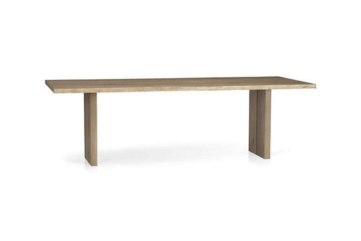 Above: The dining table is from Crate & Barrel, now discontinued. Something similar is the Crate & Barrel Dakota Dining Table in European white oak; $1,799 to $1,999.