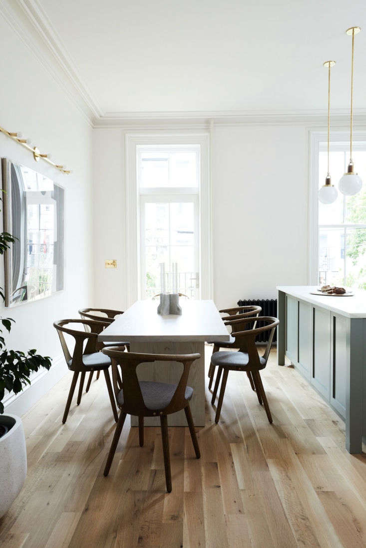 Above: The dining room adjacent to the kitchen island. Photograph by Nicole Franzen from Rehab Diary: Monochromatic Luxe in Park Slope.