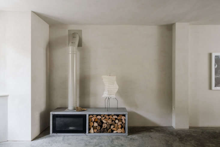 Above: A Noguchi lamp sits atop a Stovax wood-burning stove set in a custom polished-concrete surround. (See 11 Times Noguchi Lamps Stole the Spotlight, Plus 5 to Buy.)