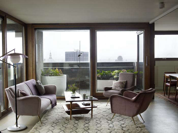 Combining striking views of London with 1970s Brutalist architecture (lacking in warmth and personality for some) can pose an interesting design challenge. This English and Italian couple wanted their easily distracted guests to cease thinking of their apartment as a viewing platform; after all, this 29th floor flat in London’s Barbican Center was their home.
