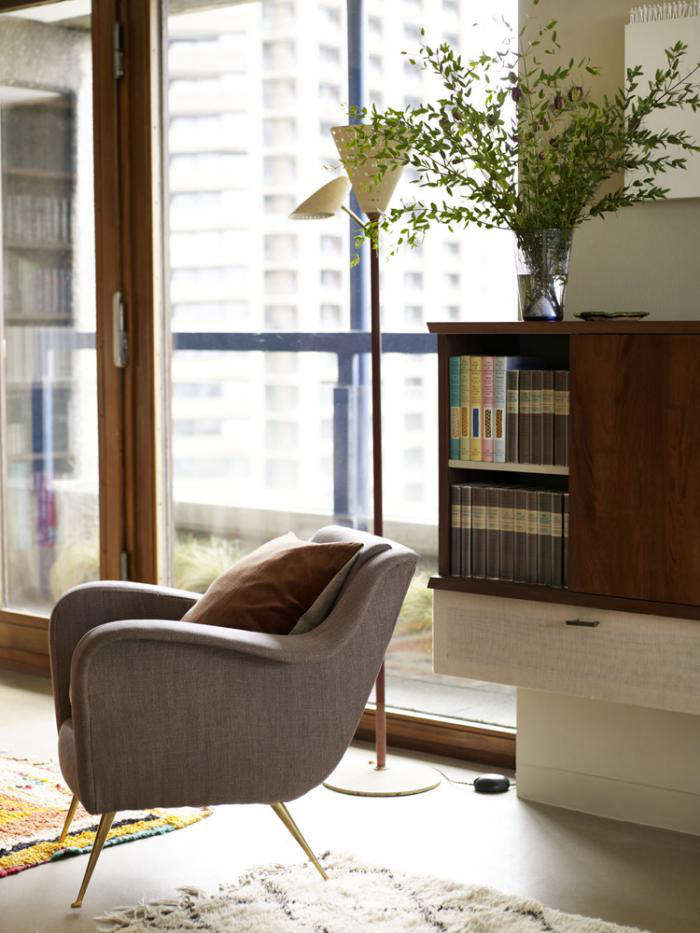 Above: Retrouvius used the graceful lines of the couple’s existing standing Italian lamp to inform their choices of midcentury Italian furniture. Photograph by Debi Treloar for Ryland Peters & Small from Reclaiming Style by Retrouvius partners Maria Speake and Adam Hills.