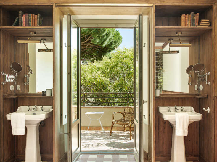 Above: In the Valentina suite, twin sinks flank the door to a private patio.