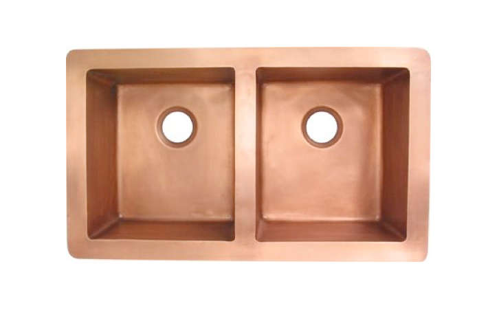 Above: Gyngell selected an inset double copper sink because she likes the way the metal looks against the marble and dark cabinets; copper also has antimicrobial properties. A Double Bowl Copper Kitchen Sink is £998.87 ($1,523.73) from the Copperstore.