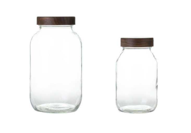 Above: Turnco’s 64-ounce Glass Storage Jar with Walnut Lid (left) is $57.95 CAD ($49.33 USD) from the Old Faithful Shop (the smaller size is currently sold out).