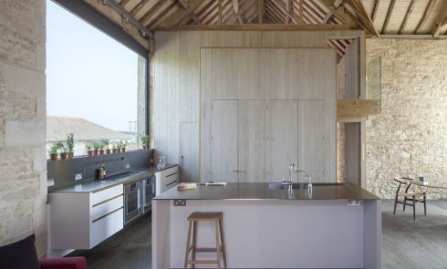 Above: British Standard, the affordable offshoot of Plain English, supplied the cabinets. (Read about British Standard in A Kitchen for the People, Courtesy of Prince Charles.) Like the idea of integrating art into the kitchen? We do–see The New Art Gallery: Paintings in the Kitchen.
