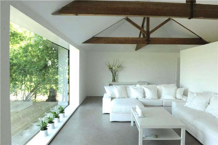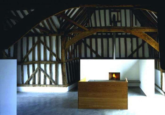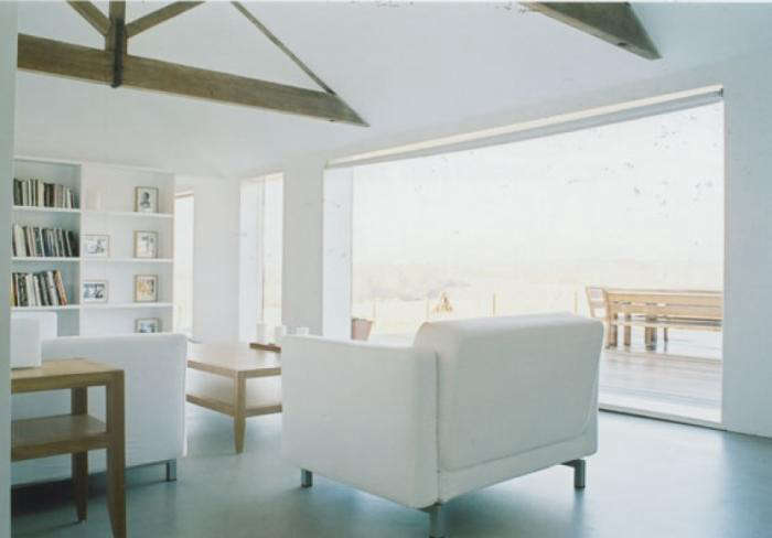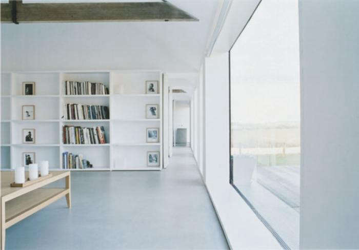 Above: Pawson managed to create a sense of indoor/outdoor flow within the historical barn structure, thanks to large windows overlooking the landscape.