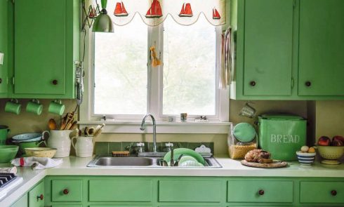 Above: The kitchen overlooks agrarian outbuildings on the property.