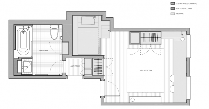 Most kids’ rooms are stopgap affairs: basic-at-best overrun by toys and stuffed animals. After all, childhood is brief. Or is it? The parents of the siblings who occupy this compact suite in a 1905 NYC building (a converted sewing factory) decided it was worth investing in quarters their kids, now ages three and five, can share for years to come.