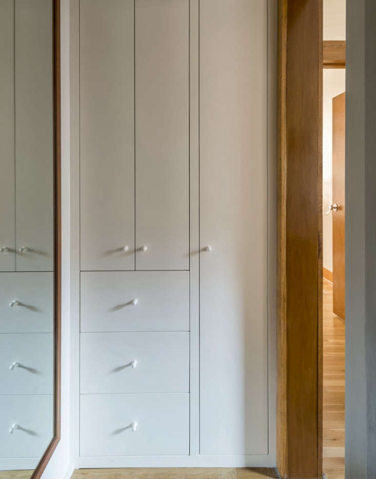Above: Along the window wall, a built-in desk turns a corner, where it becomes an armoire. All of the millwork was done by Brooklyn-based master carpenter Markus Bartenschlager (see The Artful Shoebox Apartment, Workstead Edition).