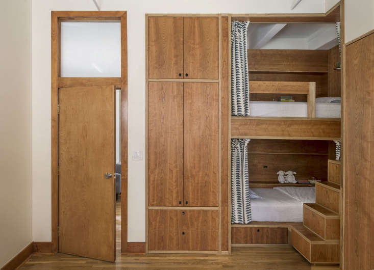 Above: “Our concept was to put the kids in the closet,” says Nadine Lynch, Workstead’s project designer. Translation: They turned what had been a walk-in closet into a built-in bunkbed complete with cupboards and drawers.