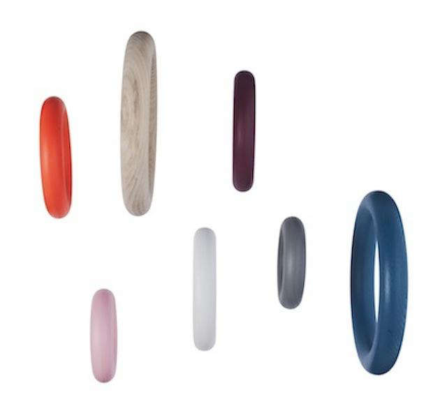 Above: The Gym Hook comes in several sizes (3 to 6 inches in diameter) and colors (natural, blue, coral, rose, gray, black, and white). For pricing and availability, visit Hay.
