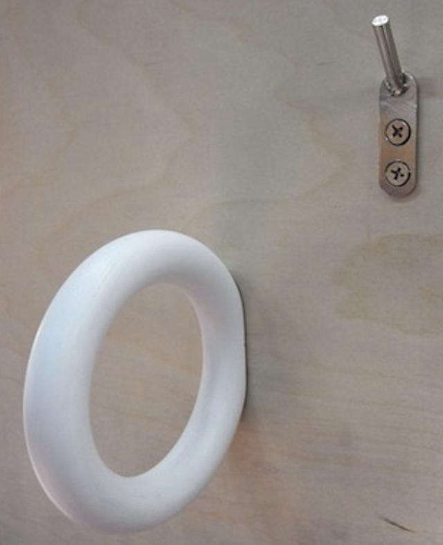 There can be never too many storage options when you have young children (I have a four-year-old son, so I know whereof I speak). Here is an appealing idea: a wooden hanger that resembles a gymnastics ring, created by Swedish designer Staffan Holm for Danish company Hay.