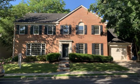Above: The house’s new look starts at the enlarged front door: Gabrielle added a design from Urban Doors of LA—”it was the last from a discontinued line and had a crack, but we loved the door and felt the crack gave it even more character.” The handle is the Sickle Grip from Rocky Mountain Hardware. The full side transom window replaced a small overhead transom.