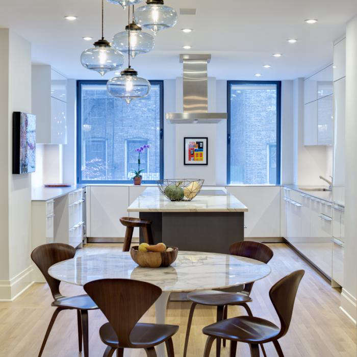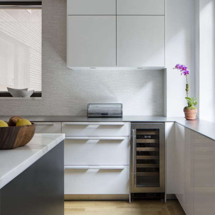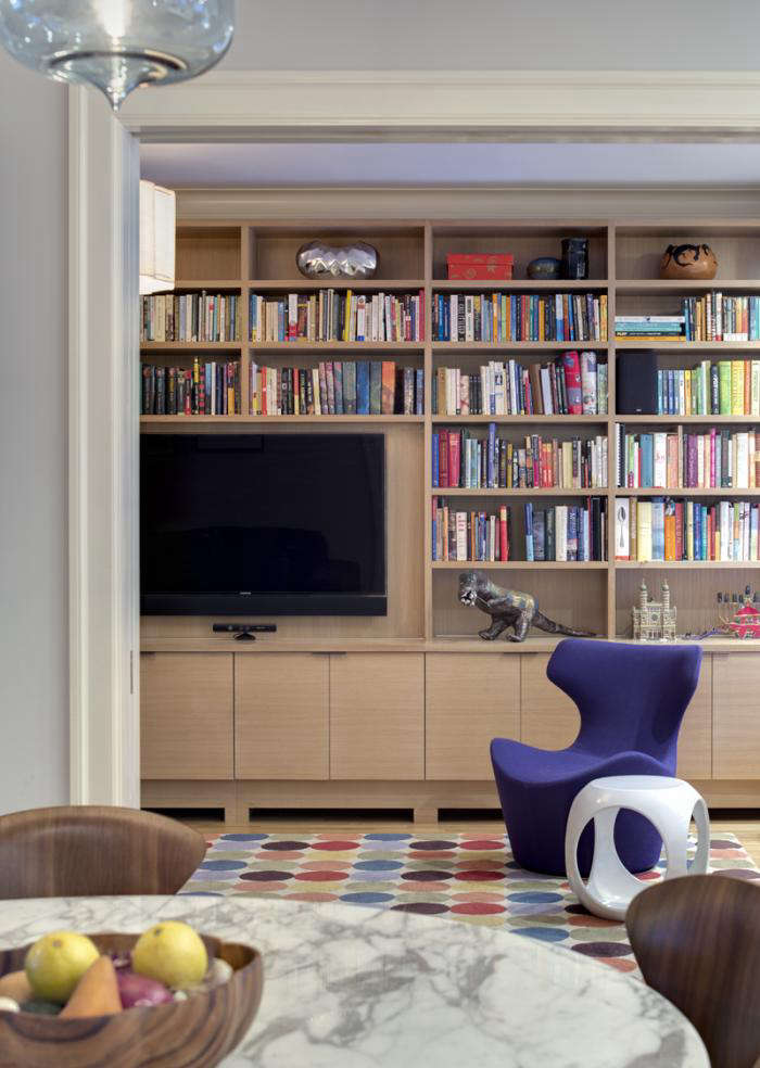 The most satisfying architecture delivers elegant design solutions without ever appearing as if it’s tried too hard. Trading space and light as currency, Platt Dana Architecture (members of the Remodelista Architect/Designer Directory) are well practiced at “robbing Peter to pay Paul” in the floor plans of their clients’ apartments, ensuring that the flow of rooms addresses the way they live. In this classic eight, a family room was gained through the loss of a bedroom (in turn, a small office behind the kitchen was converted into a guest bedroom), while the kitchen was made bigger by acquiring the space from the adjacent study. Borrowed light flows freely through the enlarged openings among the entry foyer, kitchen, living room, and newly positioned dining room, creating an overall generous sense of open and free-flowing space. And finally, by filling every available nook and cranny with well-designed, efficient storage, the architects manage to squeeze out even more precious space; leaving their clients with a healthy “space” account in the black.