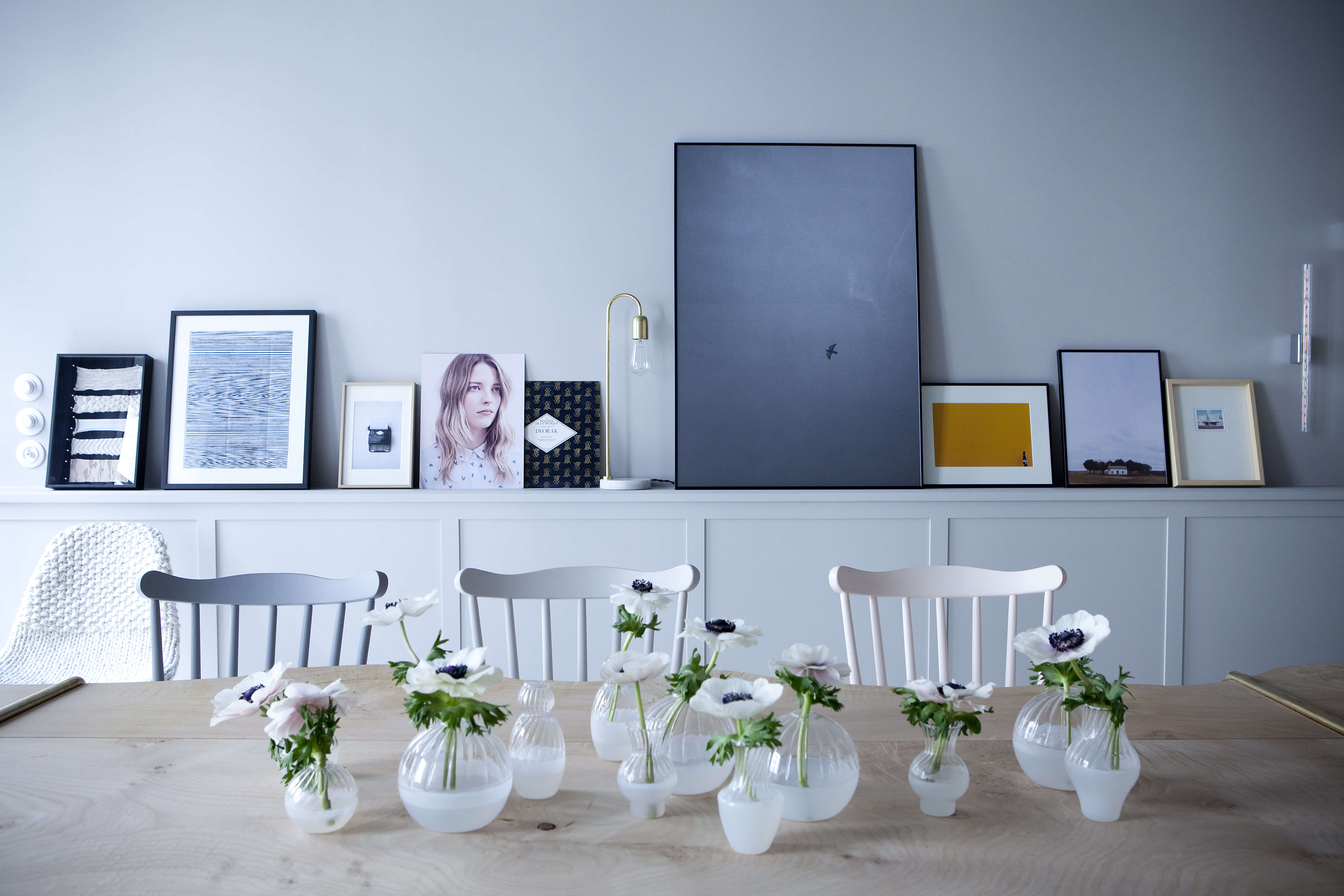 Above: Bud vases from Serax form the simple centerpiece.