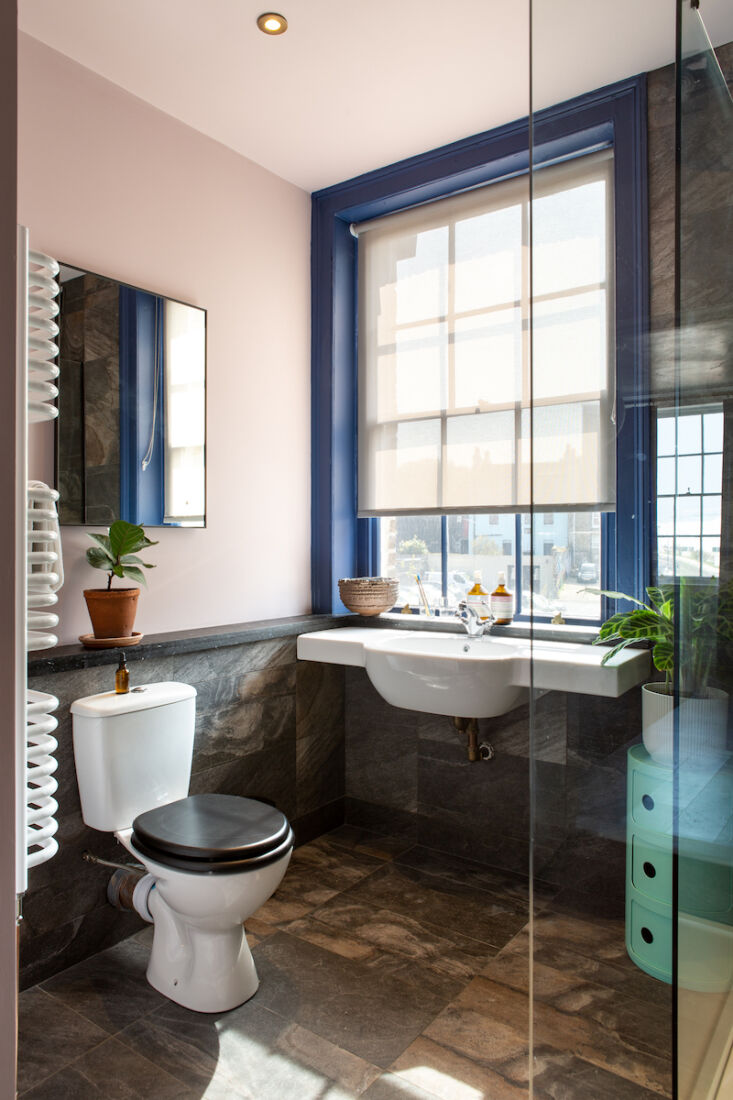 Above: “Because of how we believed this should be done, we had to make sacrifices,” Lee explains. “The bathrooms weren’t to our taste, but there was nothing physically wrong with them, so we worked with them instead of ripping them out and starting again. We reused what we had so as not to create more landfill.”,