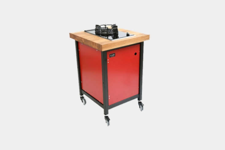 The Kochwagen site says “Become a revolutionist!” If being a revolutionist means outfitting your kitchen with obscure German appliances, sign us up. Kochwagen (“cook wagon” in German), a venture of Berlin-based Peter Gregor, produces mobile cooking trolleys available in a range of sizes and colors. The wagons are made of powder-coated aluminum sheets and are available with oak or beech tops; power is provided via a gas cylinder concealed in the cabinetry. The units feature lockable wheels and a hand rail for portability.