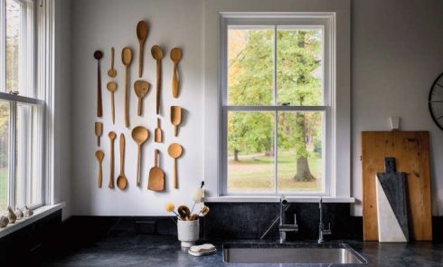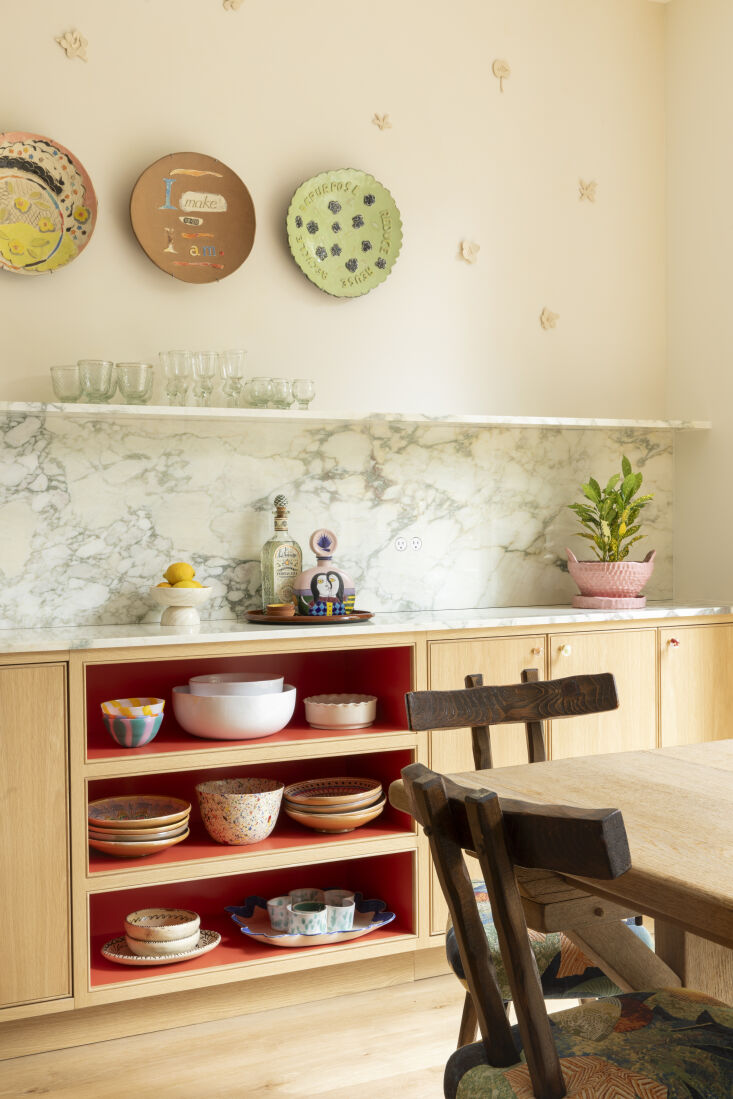 Above: In Color Meets Neutrals: A Stylist’s Reimagined 1850s Brooklyn Brownstone, open white oak shelving has a surprising, fresh wash of poppy red. Photograph by Malcolm Brown.