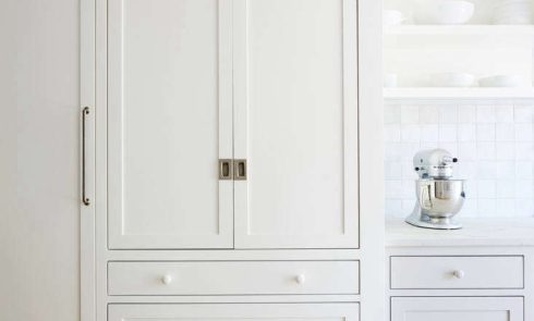 The kitchen equivalent of “business in the front, party in the back”? Cabinets that are neutral on the outside and—surprise!—have a wash of color on the inside. Here are 5 sightings.