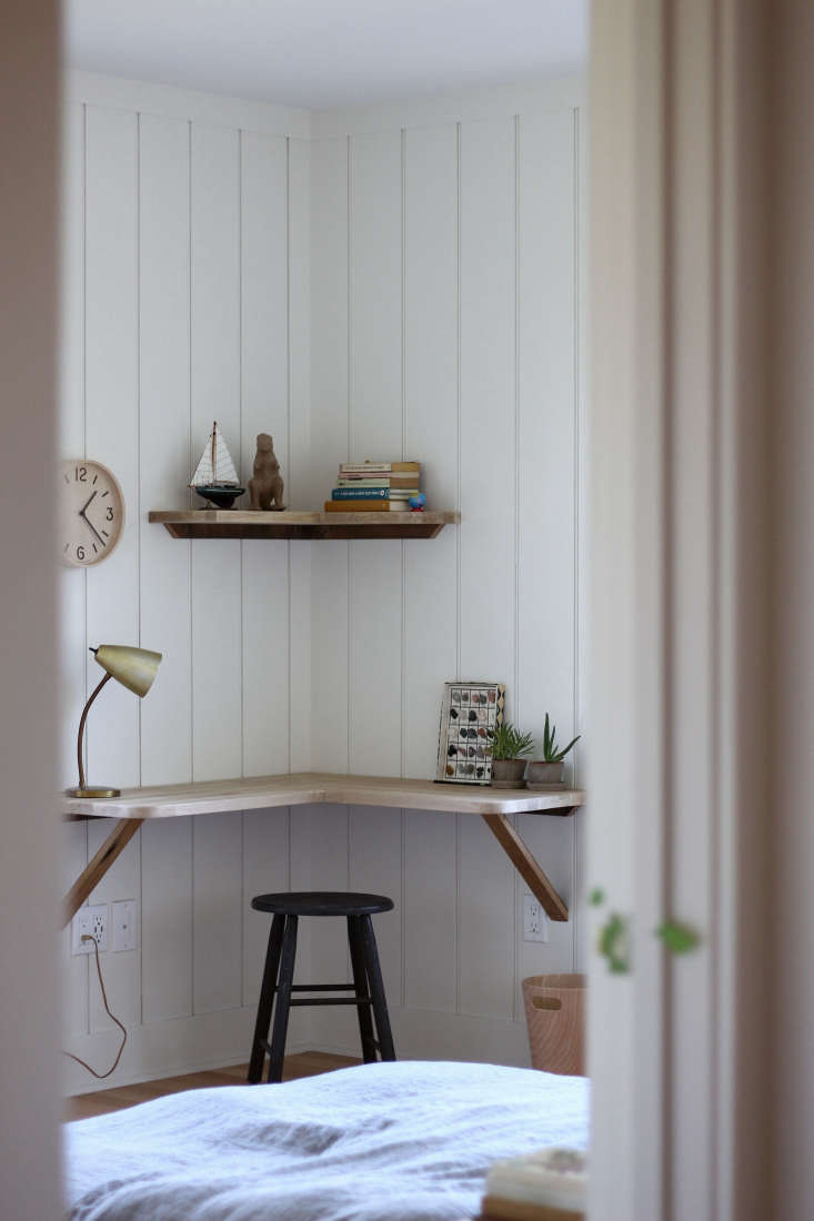 Above: Short on space, Percy and Tara fit a built-in desk into a corner of the room. Photograph by Jersey Ice Cream Co.