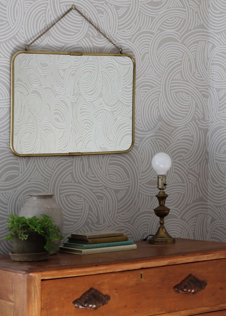 Above: A vintage chest of drawers is paired with a brass-framed mirror (since discontinued from Rejuvenation). A similar Brass Frame Mirror is available from Michele Varian. Photograph by Jersey Ice Cream Co.