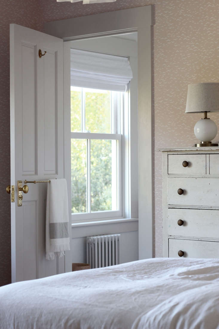 All the trim in the house is painted Benjamin Moore’s Balboa Mist: “It’s a color that seems to work everywhere—even when we try not to use it, we end up picking it again and again.” Photograph by Jersey Ice Cream Co.