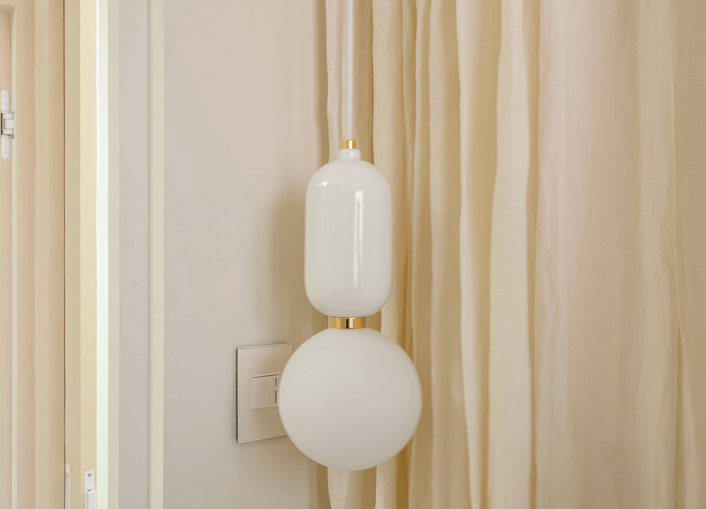 Above: Custom-painted European-style switches and an opaque globe pendant are among the owner’s investments in high design. Photograph by Matthew Williams and styling by Alexa Hotz from A Luminous, Euro-Style Row House in Washington, DC, Courtesy of Studio Oink.
