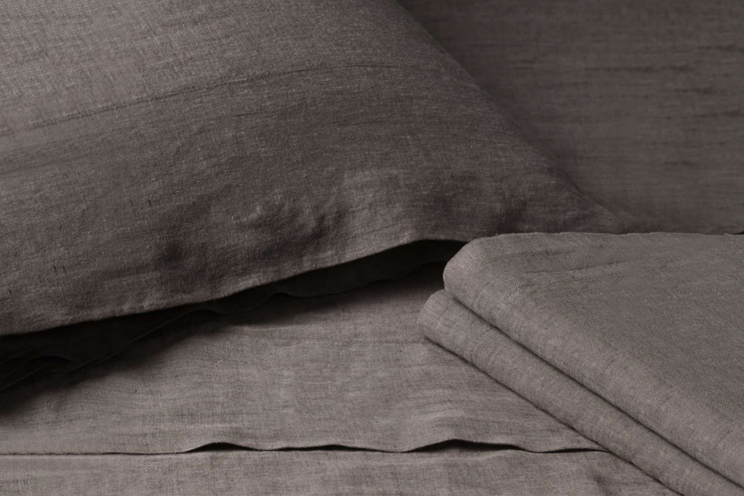 Above: The bed sheets are Restoration Hardware’s Stonewashed Belgian Linen Sheets in Graphite (shown). The queen sheet set is currently on sale for $219.