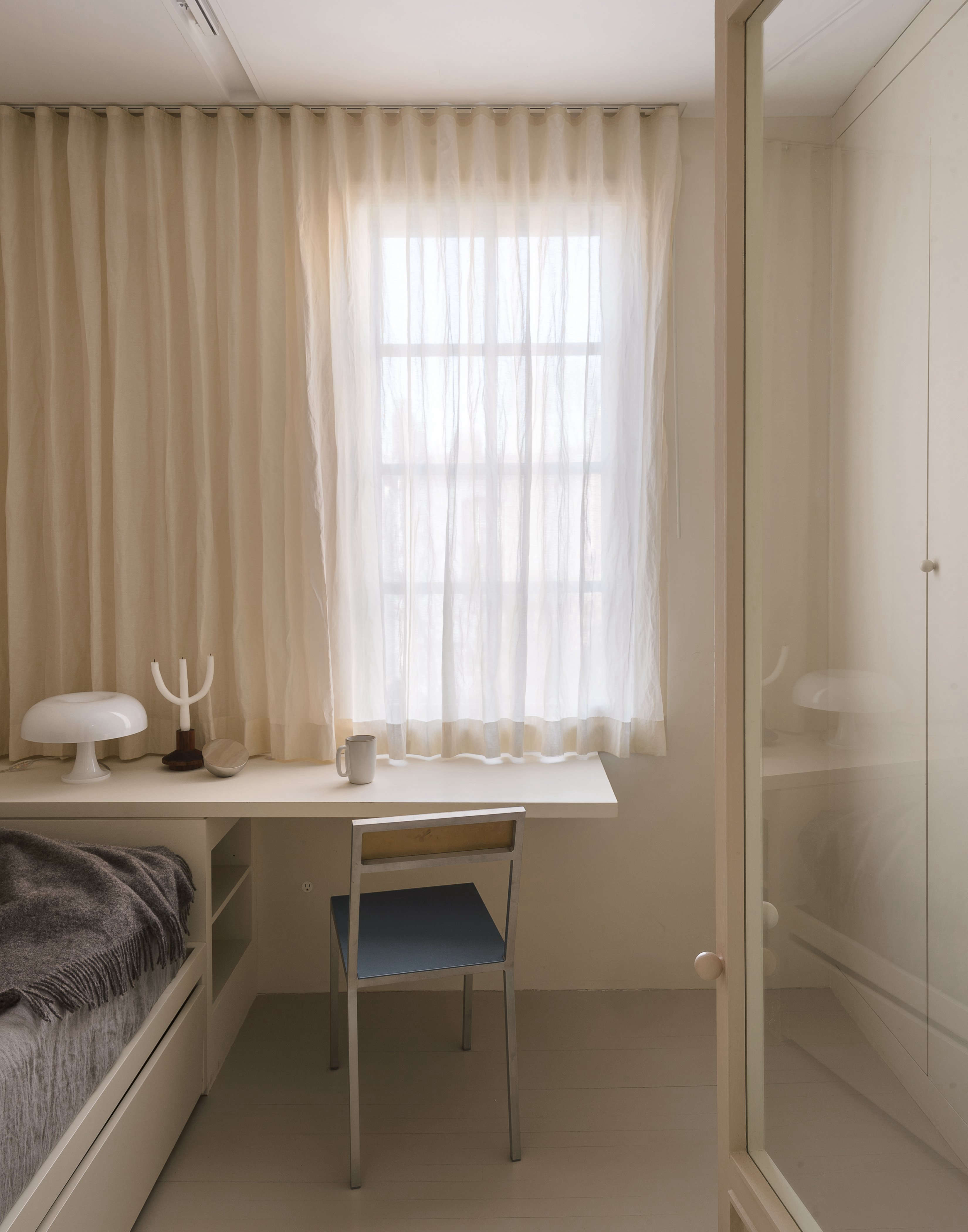 Above: Parked at the custom desk is a steel chair from Belgian husband-and-wife team Hannes Van Severen and Fien Muller