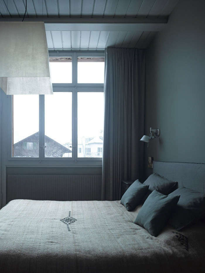Above: A serene bedroom in a 200-year-old chalet remodeled by Zurich’s Bergdorf Agency for Concepts and Communication. Learn about the bedside lights in Design Sleuth: The Tolomeo Light Takes a Turn.
